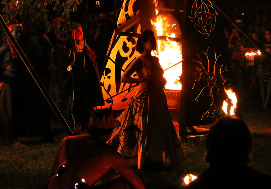 Wenn die Nacht sich über dem Calton Hill senkt und die untergehende Sonne die Aussichten für einige Minuten zauberhaft vergoldet, kommen die mehr als 300 Festival-Teilnehmer der Beltane Fire Society, die 1988 die Ende des 19. Jahrhunderts aussterbende Tradition wieder zum Leben erweckte, allmählich zusammen, um die letzten Vorbereitungen ihres fulminanten Auftretens zu treffen. Schon in voller Montur, aufgetakelt in üppiger Schönheit wie absurder Hässlichkeit, proben sie letzte Schritte und Bewegungen unter den neugierigen Augen der immer zahlreicher den Schauplatz erreichenden Zuschauer, die bereits die schwelende Spannung der folgenden Stunden spüren können.