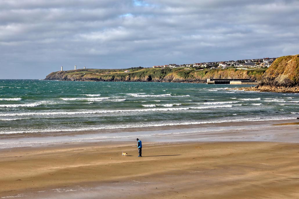 Der breite Strand von Tramore lockt große und kleine Ausflügler zum Spaziergang, Mutige gar zum Bad in der tosenden Brandung. – Foto: Udo Haafke / Mortimer Reisemagazin