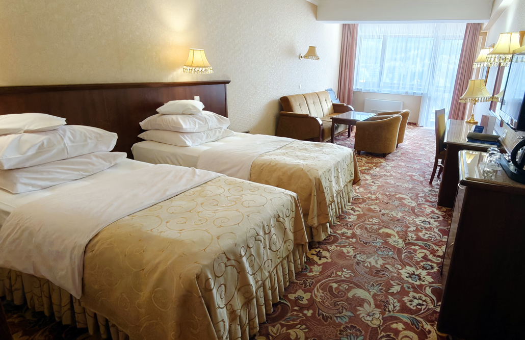 Dann betrete ich das Hotel Gołębiewski Karpacz – und sofort wird mir klar: Hier wird Großzügigkeit neu definiert. Mit Platz für 2.500 Gäste ist das Hotel ein Riese, der gleichzeitig erstaunlich persönlich wirkt. Ob für große Kongresse, Tagungen oder festliche Veranstaltungen – hier finden alle ausreichend Raum. Und dennoch gelingt es dem Haus, Individualreisenden ein Gefühl von Luxus und Intimität zu vermitteln. Die Lobby beeindruckt durch Weite und Licht, aber auch durch die subtile Eleganz, die sich in allen Bereichen fortsetzt.