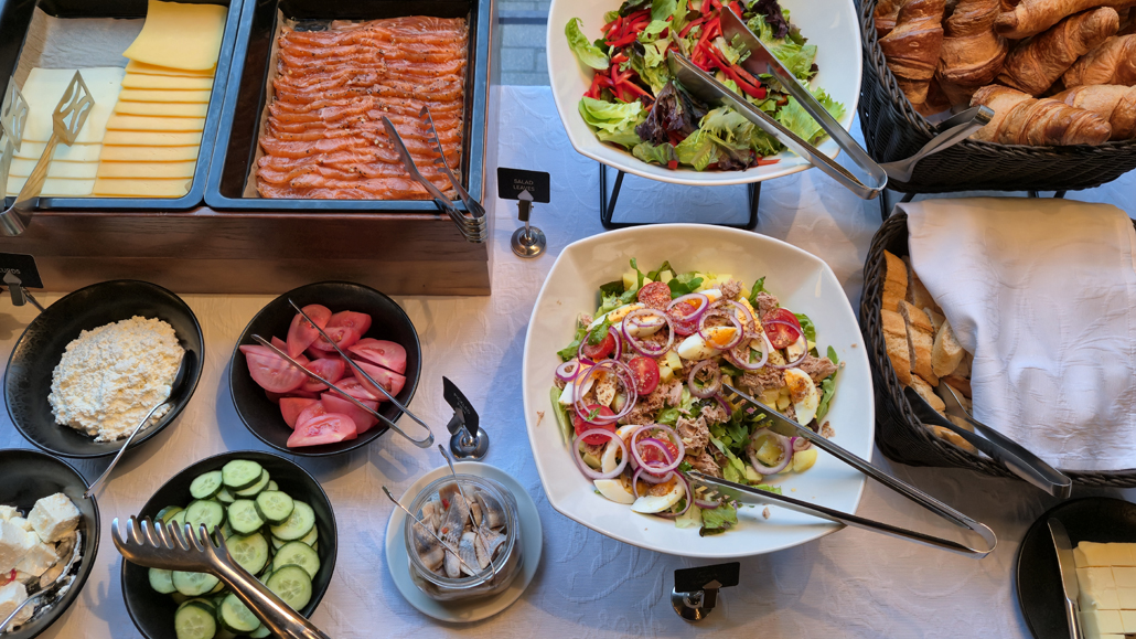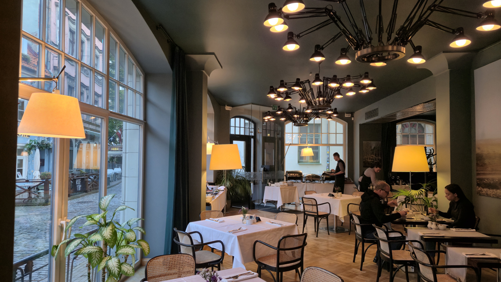 Neben der obligatorischen Frühstücksauswahl vom Croissant bis zum Smoothie warten frisch zubereitete Salate und ein paar warme Speisen. Dezent und unauffällig legt das aufmerksame wie unaufdringliche Personal am Büffet nach. So gestärkt muss man nur noch ein paar Schritte durch die Türe machen und schon steht man direkt in der entdeckenswerten Altstadt von Riga – die Erkundigungen können gut gelaunt und wohl genährt starten.