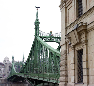Nur zwei Jahre dauerte der Bau (1894-1896) der Freiheitsbrücke. Franz Joseph I., Kaiser von Österreich und König von Ungarn, schlug persönlich den letzten Nietnagel ein. Über den eisernen Brückentoren sitzen vier sogenannte Turul-Vögel – Fabelwesen aus der ungarischen Mythologie – mit ausgebreiteten Flügeln auf goldenen Kugeln.