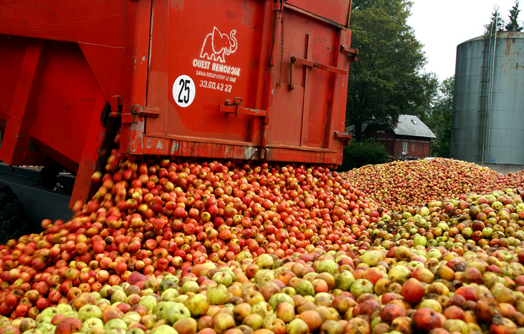 Und weil sich aus dem Apfel der Normandie so viel produzieren lässt, begebe ich mich auf die Suche nach dem Pendant, der Birne. Auch daraus lassen sich hervorragend geistige Genüsse erzeugen. Fündig werde ich im Ort Domfront, im Departement Orne in der Normandie. Monsieur Leroyer und seine Frau, Bauern auf dem Birnenhof begrüßen mich freudig und zeigen mir jeden Schritt der Produktion des Poire, der als Apfel Cidre heißen würde. Das Mischverhältnis des Poire ist hier 60 zu vierzig bei Birnen und Äpfeln. Eine Tonne Birnen erntet Leroyer pro Baum, von denen er 200 große und 800 kleinere Bäume hat, die nach 15 Jahren das erste Mal tragen.