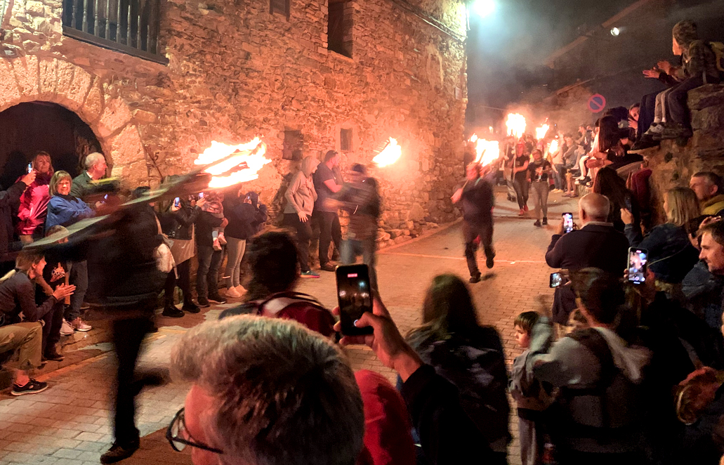 Die Zuschauer in Katalonien feuern im wahrsten Sinne des Wortes die Fackelläufer an. – Foto: Susanne Timmann