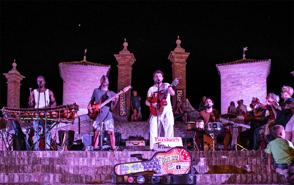 Sie kommen aus Argentinien, Kanada, den USA, aus Frankreich, Spanien, Portugal, Rußland, Taiwan, Südkorea – aus Italien natürlich, Deutschland, den Niederlanden und anderen Ländern. Sie spielen World Music und Pop, Reggae, Rap und Rock, Tango, Jazz, Klezmer und Soul … Auch beim 38. Ferrara Buskers Festival werden die Grenzen zwischen Nationen und musikalische Genres schwinden. Menschen von Nah und Fern werden sich verbunden fühlen, wenn sie sich von energiegeladenen Rhythmen vor Ferraras grandioser Altstadt-Kulisse mitreißen lassen. Akrobatik, Clownerie, Magie und Straßenpoesie runden das buntgemischte Programm in den Straßen und auf den Plätzen der Welterbe-Stadt ab und mit internationalem Street Food wird für jeden kulinarischen Geschmack gesorgt sein.
