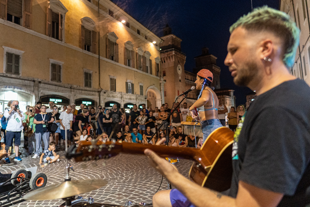 Zu den in Europa schon bekannteren Namen gehört Estrella Gomes. Seit zehn Jahren tourt die Portugiesin mit ihren Songs und der Gitarre über den Kontinent. Zuhörende bezaubert sie mit ihrem charmanten Akzent und ihrem rebellischen Elfen-Charisma. Die große Überraschung kommt, wenn Estrella Trompete spielt. Denn das tut sie ganz ohne Instrument. Aus Kanada reist AP MAJOR nach Ferrara, ein Rapper, Produzent und Multiinstrumentalist. Seine elektrisierenden Rhythmen verbindet er mit sozialen und politischen Botschaften. Trotz seiner ernsten Themen versprüht der Rapper eine vitale Energie, der man sich kaum entziehen kann.