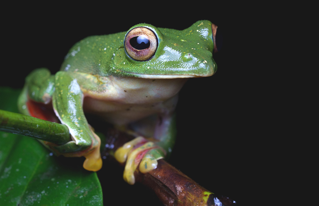 Meterweit fliegen, in der Luft bremsen und steuern – das alles kann der indische Flugfrosch. Er beansprucht den Titel des besten Gleiters unter den Amphibien für sich. Denn bei einem Gleitflug können die sieben bis zehn Zentimeter großen Tiere eine Entfernung von bis zu 10 Metern zurücklegen. Zu diesem Zweck verfügt der Flugfrosch über beeindruckende Schwimmhäute, die es ihm ermöglichen, von Baum zu Baum zu gleiten. Mithilfe von Winkeln und Anspannung/Entspannung können die Amphibien sogar bremsen und steuern. Der ganze Körperbau ist aerodynamisch optimiert. So hat sich die Haut zwischen den Zehen dieser Frösche zu einer Art Segel entwickelt, welches die Frösche beim Fliegen quasi hissen. Zudem haben Finger und Zehen Haftscheiben, welche es dem Frosch ermöglichen, sich an Baumrinde festzuhalten. Er lebt hauptsächlich in den Baumkronen tropischer Wälder.