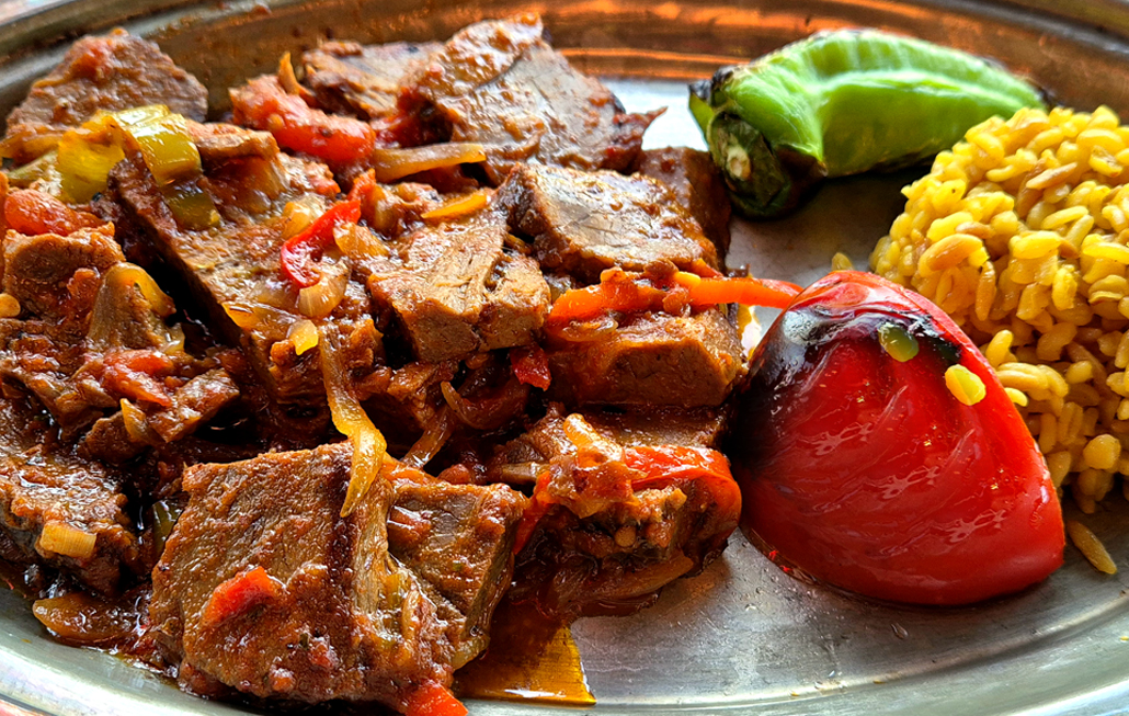 Für den großen Hunger empfiehlt sich das Testi Kebab – ein im Tontopf geschmortes Fleischgericht, das am Tisch mit feurigem Ritual geöffnet wird, oder Kara Erik Yahnisi, einen fabelhaften Eintopf mit schwarzen Pflaumen und Rindfleisch. Zu den ewig jungen Klassikern gehören daneben natürlich Kebab sowie verschiedene Lammgerichte, denen gemeinsam ist, dass das Fleisch zart und aromatisch auf der Zunge zergeht. Wer es maritim mag, greift zu fangfrischem Fisch oder Meeresfrüchten, begleitet von duftendem Safranreis. Und zum Abschluss wartet ein Stück Baklava mit einem Espresso.