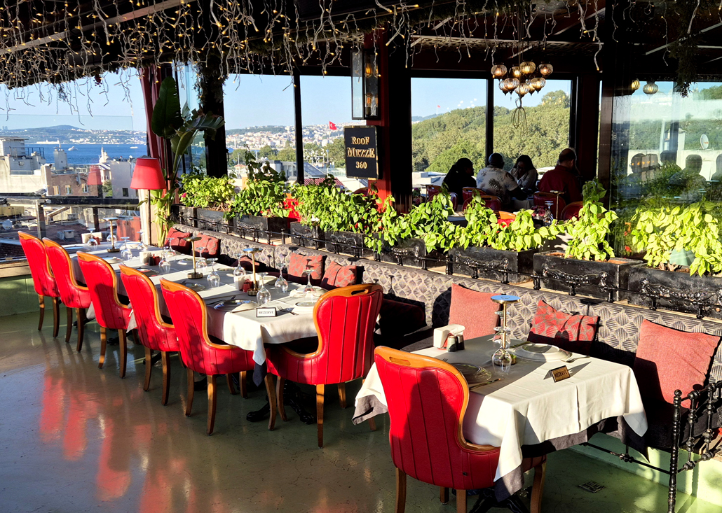 Wer glaubt, dass man in Istanbul nur zwischen Basaren und Bosporus kulinarisch auf seine Kosten kommt, der hat das Roof Mezze 360 noch nicht erlebt – ein Restaurant, das sich nicht nur in luftiger Höhe in der achten Etage des Seres Old City Hotels befindet, sondern auch kulinarisch ein wenig über den Dingen schwebt. Hier trifft der verwöhnte Gaumen auf eine faszinierende Skyline mit nahezu allen Landmarken der türkischen Megametropole.