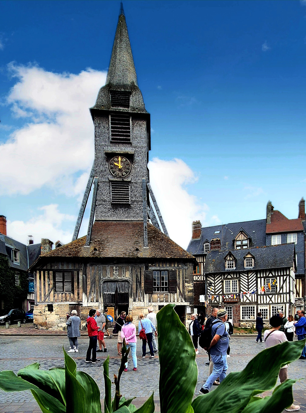 Auf einem Hügel unweit des Hafenbeckens erhebt sich mit der Église Sainte-Catherine Frankreichs älteste Holzkirche aus dem 15. Jahrhundert. Errichtet wurde das ungewöhnliche Gotteshaus mit dem separaten Glockenturm mit Holz aus dem Forêt de Touques, dem mit 3.500 Hektar größten Wald im Calvados, und Techniken aus dem Schiffsbau.