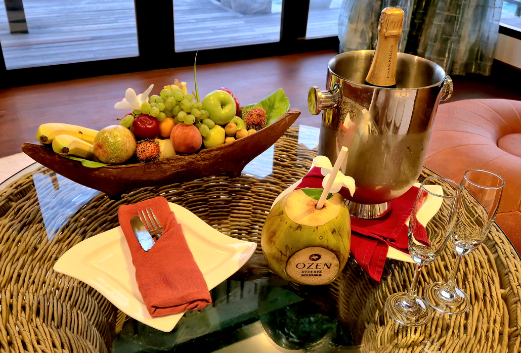 Hunger? Kein Problem – hier wird nicht gegessen, hier wird inszeniert. Ob im Fine-Dining-Restaurant, ob beim Sundowner oder beim Candle-Light-Dinner: Die Küche ist so international wie die Gäste – und so exquisit wie die im wahrsten Sinne des Wortes ausgezeichnete Weinkarte. Besonders charmant: Das Ultra-All-Inclusive-Konzept umfasst nicht nur köstliche Cocktails mit Namen wie „Ozen Reserve Supremacy“ (Wodka, Passionsfrucht und Schaumwein), „Aquatic Wonder“ (Grand Marnier, Blue Curacao und Schaumwein) und „Stay awesome“ (Espresso, Gewürzsirup und Cognac), sondern auch den Champagner zum Frühstück.