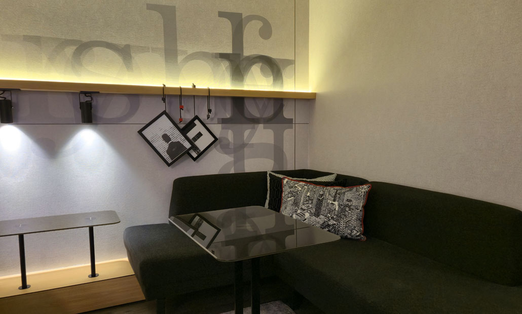 Verbindendes Designelement ist eine Hommage an die Frankfurter Buchmesse, die weltweit wichtigste Fachmesse der Branche. Dieser lokale Bezug wird durch inspirierende Zitate an den Wänden oder eine gemütliche Sofaecke zum Lesen und Entspannen hervorgehoben. Zusätzlich sind die Zimmer klimatisiert und verfügen über einen Schreibtisch, einen 55-Zoll-Fernseher, eine Kaffee- oder Teemaschine, Parkettböden und die bereits positiv hervorgehobenen, schallisolierten Fenster.