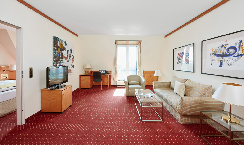 144 Zimmer und 22 Apartments in den Kategorien Deluxe, Superior und Executive und eine Suite sind auf sieben Etagen verteilt. In den meisten Einzel- und Doppelzimmern gibt es auch eine kleine Kitchenette. Ein Arbeitsplatz mit Schreibtisch findet sich auf allen Zimmern. Hervorzuheben ist, dass bereits ab der Superior-Kategorie die Zimmer in getrennte Wohn- und Schlafbereiche aufgeteilt sind. Die Zimmer bieten viel Platz, sind ruhig und behaglich. Das Internet funktioniert einwandfrei ohne Passwort auf dem Zimmer. Die Fernseher auf den Zimmern sind meist von durchschnittlicher Größe, erfüllen aber anstandslos ihre Programmpflichten. Ein geräumiges Bad mit Fliesen aus Meißener Porzellan und mit Badewanne und Dusche gibt es auf jedem Zimmer. Wer zusätzlich eine begehbare Dusche bevorzugt oder benötigt, sollte ein Zimmer in der Superior- oder Executive-Kategorie buchen.
