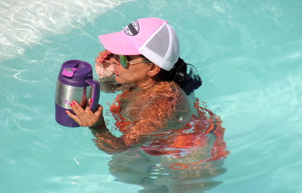 Und obschon Punta Cana seit Jahr und Tag zu den beliebtesten Urlaubsplätzen in der DomRep gehört, herrscht weder am Strandabschnitt des mondänen Royal Suites Turquesa noch an den benachbarten Hotels der Palladium Gruppe drangvolle Enge. Im Gegenteil. Auffällig sind nur die amerikanischen Gäste, die fast ausnahmslos an der Bubba-Mug in der Hand zu erkennen sind. Bubba-Mugs sind riesige Thermobecher – wahlweise mit Bier, Softdrinks oder Cocktails gefüllt. Denn, was warm hält, hält auch kühl. Und ganz coole Amerikaner laufen gleich im Rudel mit identischen Bubba-Mugs die Playa de Bávaro rauf und runter. Ab und an biegen sie dann zur nächsten Bar der All-inclusive-Hotels ab, um, wie US-Boy Steve grinsend sagt, „die Luft aus den Bechern zu lassen“.