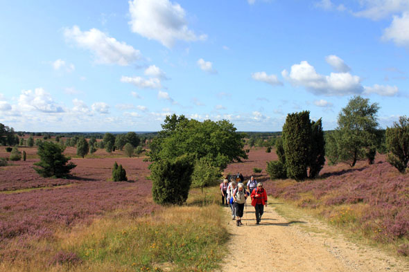 Vor allem für Wanderer hat die leuchtende Landschaft rund um den staatlich anerkannten Luftkurort Schneverdingen eine Menge zu bieten. Am besten erkundet man die Region bei einer geführten Tour durch das Landschaftsschutzgebiet Höpen und das Pietzmoor, einem verzauberten Fleckchen Erde mit beeindruckender Artenvielfalt. Beim Erkunden und Entdecken versorgen einen die zertifizierten Gästeführer ganz nebenbei mit spannenden Geschichten und Anekdoten aus ihrer Heimat.