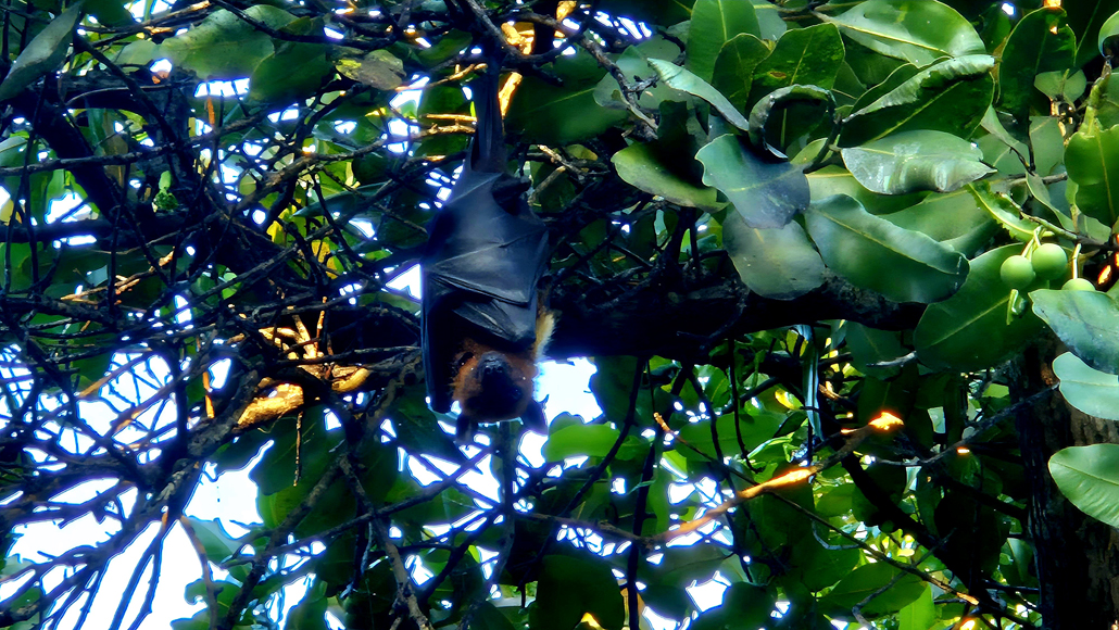 Die beeindruckenden Flughunde sind – so wie hier im Sheraton Maledives Full Moon Resort – auch tagsüber unterwegs. – Foto: Karsten-Thilo Raab / Mortimer Reisemagazin