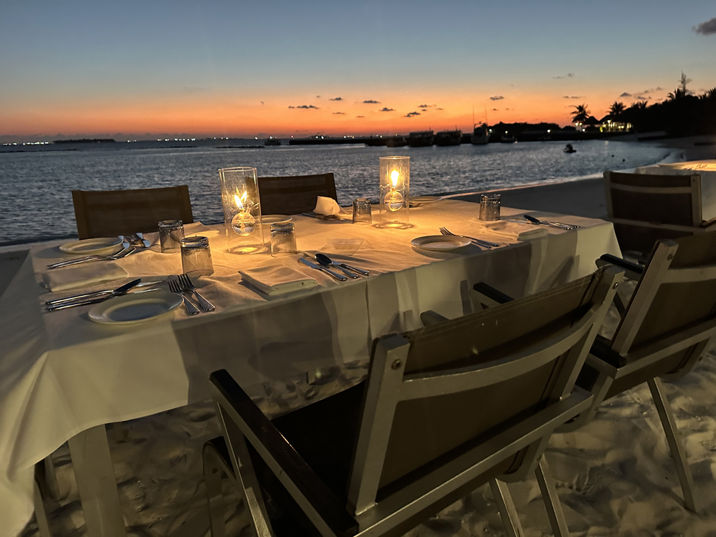 Die Uhrzeit spielt auf den Malediven – so wie hier im Sheraton Maledives Full Moon Resort – eher eine untergeordnete Rolle. – Foto: Karsten-Thilo Raab / Mortimer Reisemagazin