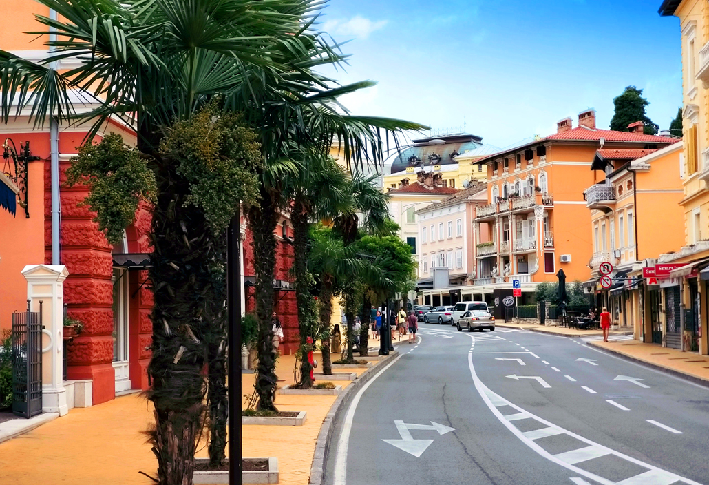 „Obwohl Abbazia über keine Thermalquellen verfügt, stieg es damals zum bedeutendsten Kurort der Österreichisch-Ungarischen Monarchie neben dem böhmischen Karlsbad auf“, beteuert Liliana Stipanić mit Blick auf die Historie. Grund seien, so die Stadtführerin weiter, die exzellenten heilklimatischen Bedingungen an der Opatija Rivera mit ihrem ganzjährig milden Temperaturen. Das Učka Gebirge schirme das Seebad zur Landseite hin ab und sorge dafür, dass winzig kleine, salzhaltige Meerwassertropfen in Kombination mit der üppigen subtropischen Vegetation ihre Wirkung als maritime Aerosole besonders wirkungsvoll entfalten könnten.