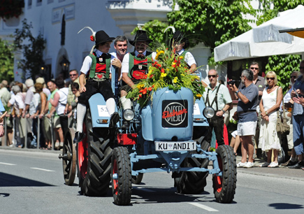 Der größte Blumenkorso Österreichs – ein Defilee aus bunt geschmückten Festwagen, Pferdegespannen, Musikkapellen und Oldtimern sorgte für blumenreiche Momente bei großen und kleinen Besuchern im Ferienland Kufstein.