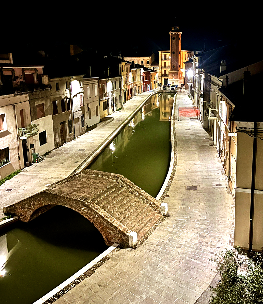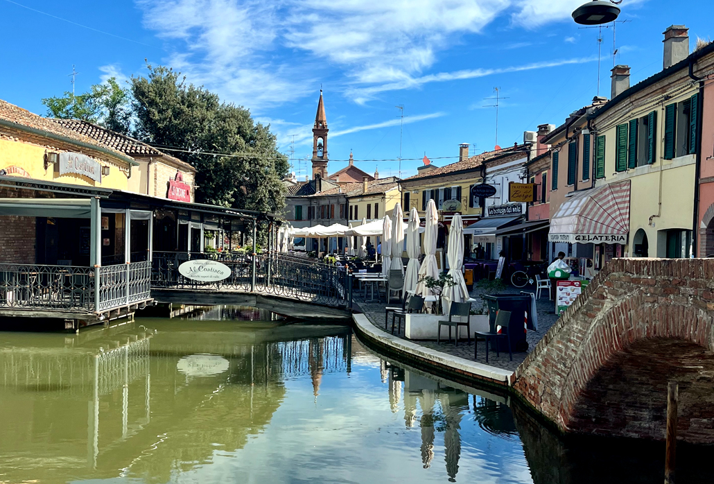 In der Tat war und ist Comacchio mit Venedig vergleichbar. Auf 13 Inseln siedelten sich die Menschen an und bauten ihre Häuser genau wie in Venedig auf Pfählen. Erst zur Mitte des 20. Jahrhunderts gab es dann den ersten Damm und damit eine Straßenverbindung. Kanäle durchziehen das Zentrum und verbinden die Stadt mit der Adria. Von dort wurde der in Dosen verpackt geräucherte Aal verschickt. Zur Fischverarbeitung ist auch Salz unerlässlich. Das kam viele Jahre ebenfalls aus der Lagune Comacchios. Die Saline ist heutzutage jedoch nur noch Museum.