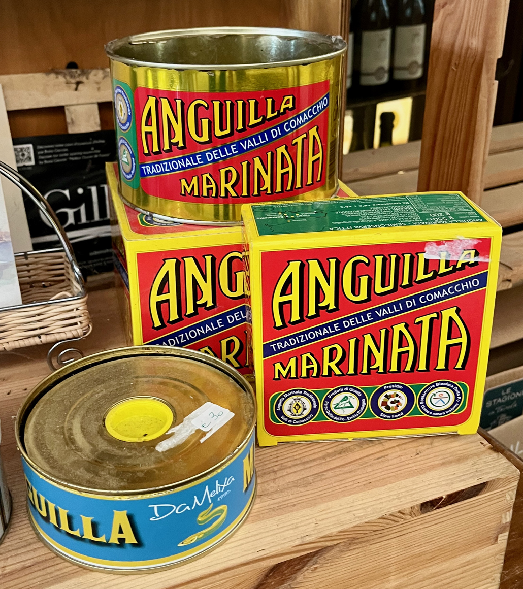 Apropos Film – Comacchio zog neben der Loren später auch immer wieder Filmgrößen an. Michelangelo Antonioni etwa oder auch Wim Wenders, wie Chiara von Po-Delta-Tourism erzählte. Besonders ein Laubengang der fast 600 Meter schnurgerade ein Kloster mit der Stadt verband sowie die alte Fischmanufaktur hatten es den Cineasten dabei angetan. Die alte Fabrik wird übrigens noch heute teilweise genutzt, dient aber ansonsten als Veranstaltungsort. So auch beim Galaabend des Aalfestes. Die Tradition lebt und es gibt kaum ein Restaurant oder Geschäft im Ort, das nicht mit dem Aal wirbt.