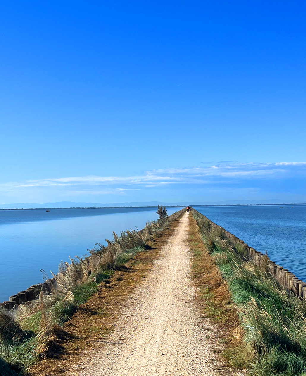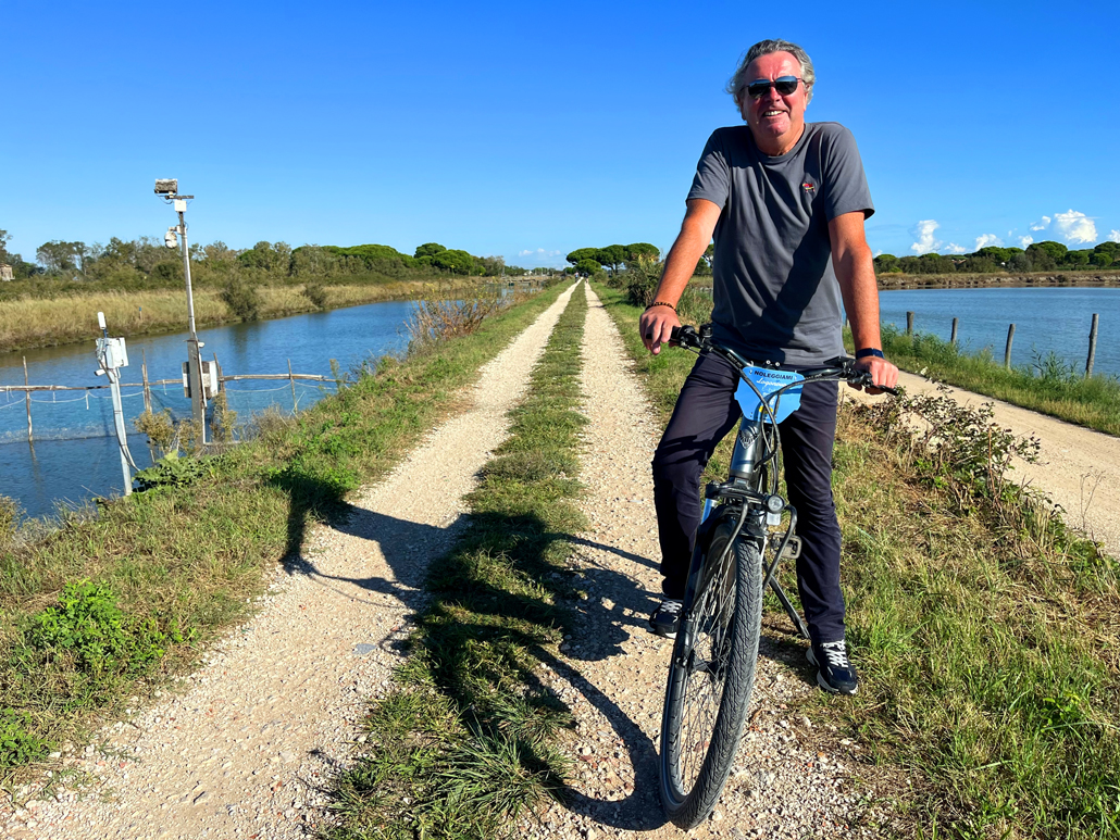 Wer es etwas aktiver mag, schwingt sich auf ein Pferd oder auch den Sattel eines Rades und umrundet die große Lagune. Zirka 50 Kilometer ist die Tour, aber dank der flachen Landschaft und eines modernen E-Bikes locker zu bewältigen. Besonders die Fahrt über einen gut sechs Kilometer langen, schmalen Damm ist ein Erlebnis. Die Strecke wurde zu einem der schönsten Radwege Italiens gekürt.