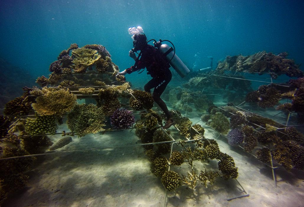Auf den unterschiedlich großen Gestellen gedeihen die Korallen prächtig. – Foto: Marriott International / Judith Anne Cruz