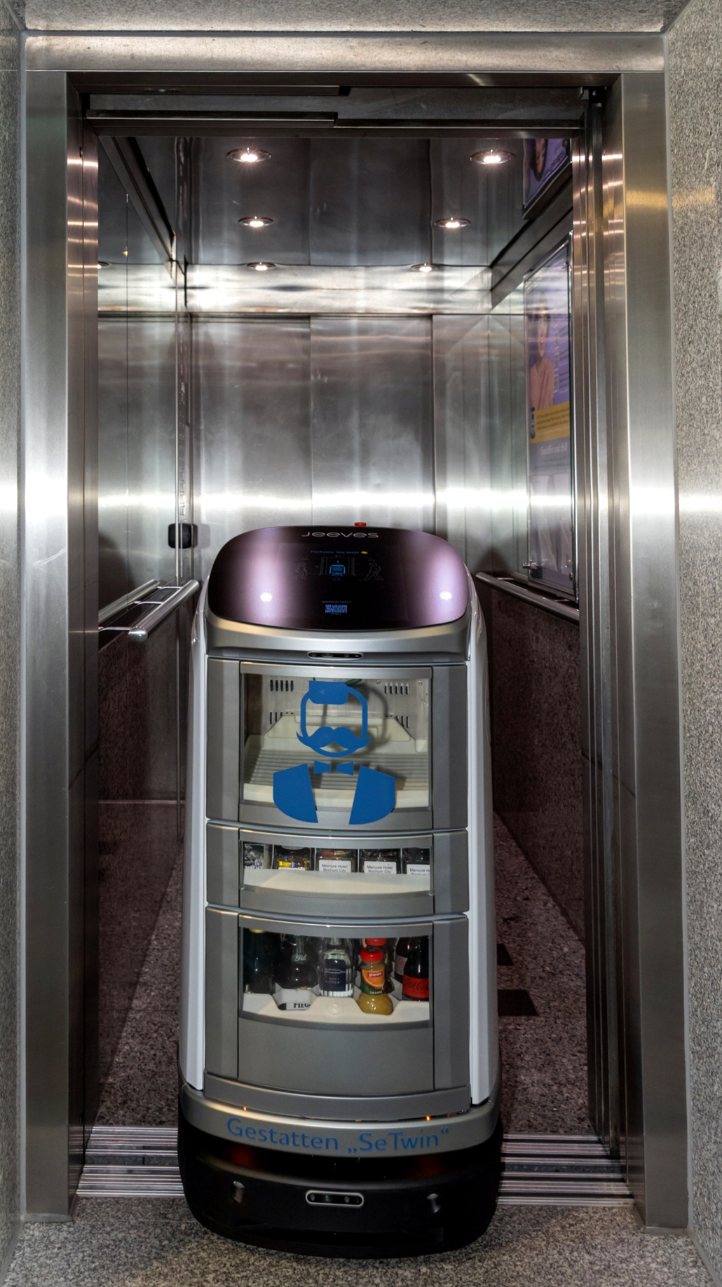 „Jeeves fährt grundsätzlich nur alleine im Aufzug, was schon mal für Verzögerungen sorgen kann, wenn an den Aufzügen großer Gästeandrang herrscht“, verweist Wagner auf die Tatsache, dass der Roboter vornehmlich in den späten Abend- sowie in den Nachstunden von den Gästen beansprucht wird. Dank des hochmodernen Lieferservices kann das Bochumer Mercure gänzlich auf das Vorhalten einer Minibar in den Gästezimmer verzichten, was sich wiederum positiv auf die Kostenbilanz auswirkt.