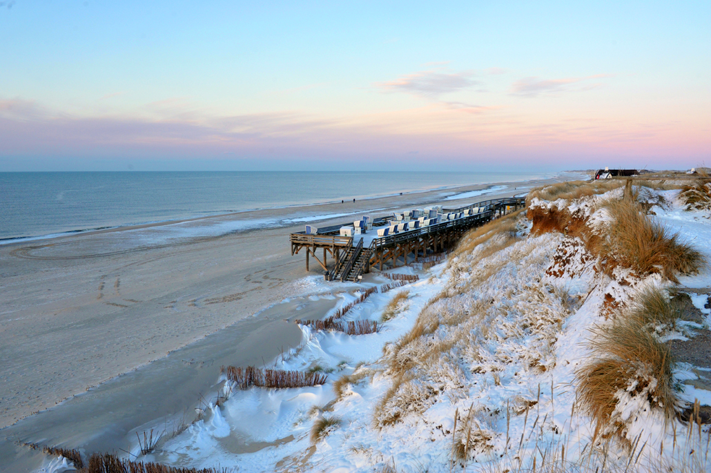 Überall auf der Nordseeinsel Sylt liegt es in der Luft. Fast greifbar und auf so eigene Art kaum zu fassen – das Gefühl von Grenzenlosigkeit. Auf geheimnisvolle Weise scheint in der kalten Jahreszeit die Luft noch ein bisschen klarer, der Blick weiter und der Strand endloser zu sein als zu jeder anderen Jahreszeit. Wolken rasen über den Himmel und tauchen die Landschaft in unzählige Blau- und Grautöne. Die Sonne steht ganz niedrig am Horizont und leuchtet im milden Glanz – das ist der Sylter Winterzauber.