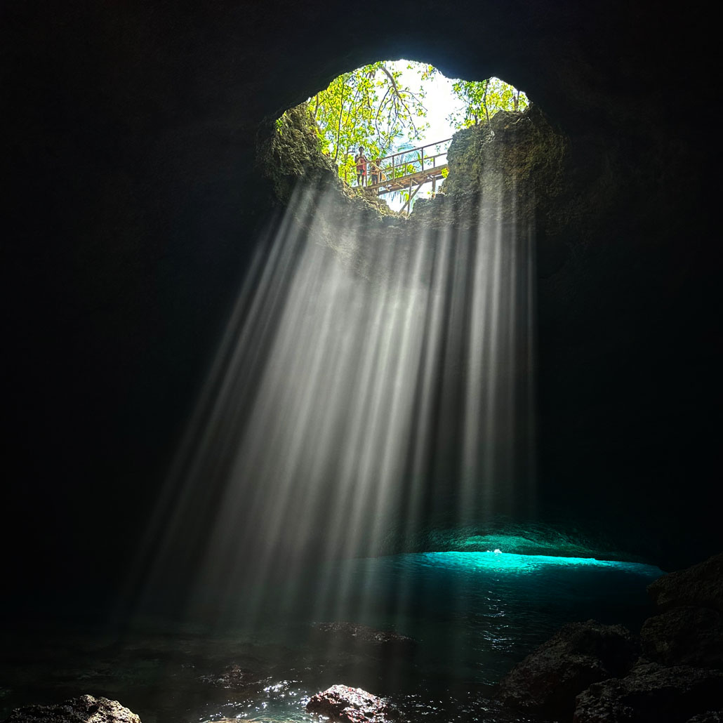 Sonnenstrahlen in der Blue Cave auf Espiritu Santo. – Foto: Vanuatu Tourism