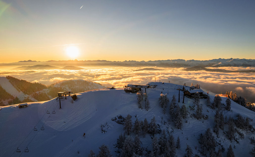 Die Talstation der Dorfbahn Rosnerköpfl liegt mitten im Ortszentrum und bietet einen schnellen Einstieg ins gemütliche Skigebiet mit seinen neun Liften und den 29 Kilometer umfassenden präparierten Abfahrten. Mit der 8er-Kabinenbahn Ikarus schweben Skifahrer und Snowboarder in zehn Minuten auf die Bischlinghöhe, den Hausberg von Werfenweng – spektakuläre Panoramablicke über die umliegende Bergwelt inklusive. Von dort geht es ins Ladenberg- und Strussinggebiet oder auf die sechs Kilometer lange Panoramaabfahrt ins Tal. Mehrere Anfängerareale, darunter der „Sunny Kids Park“ an der Mittelstation der Dorfbahn sowie der „Bobopark“ und der „Ikis Snowpark“ an der Ikarus-Bahn, machen den Einstieg in die Welt der sanften Schwünge zum spielerischen Vergnügen.