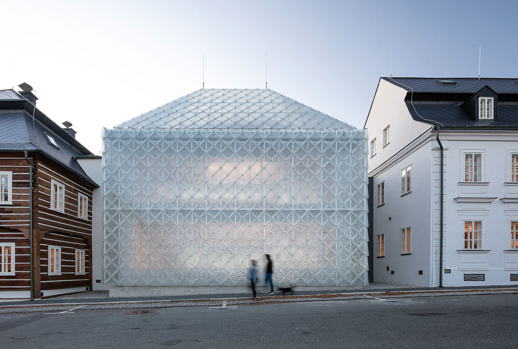 Auch auf dem Land trifft man in Tschechien auf innovative Architekturprojekte. Ein wahrhaft leuchtendes Beispiel findet sich in Nový Bor in Nordböhmen. Dort hat der renommierte Glashersteller Lasvit seinen Firmensitz zu einem kleinen Architekturwunder verwandelt. Das Herzstück bildet ein zweigeschossiges Glashaus, dessen Fassade komplett aus transparenten Platten besteht. Bei Einbruch der Dunkelheit erstrahlt dieses Gebäude wie ein Leuchtturm in der Crystal Valley-Region. 2020 gewann Lasvit für sein Firmenareal den tschechischen Staatspreis für Architektur sowie den international renommierten Dezeen Award als bestes Bürogebäude der Welt. Strahlkraft mit Nachwirkung: Lasvit lieferte moderne Lichtskulpturen „made in Czechia“ für Opernhäuser von Dubai bis Bangkok und beweist damit, dass Architektur und Design aus Tschechien global mithalten können.