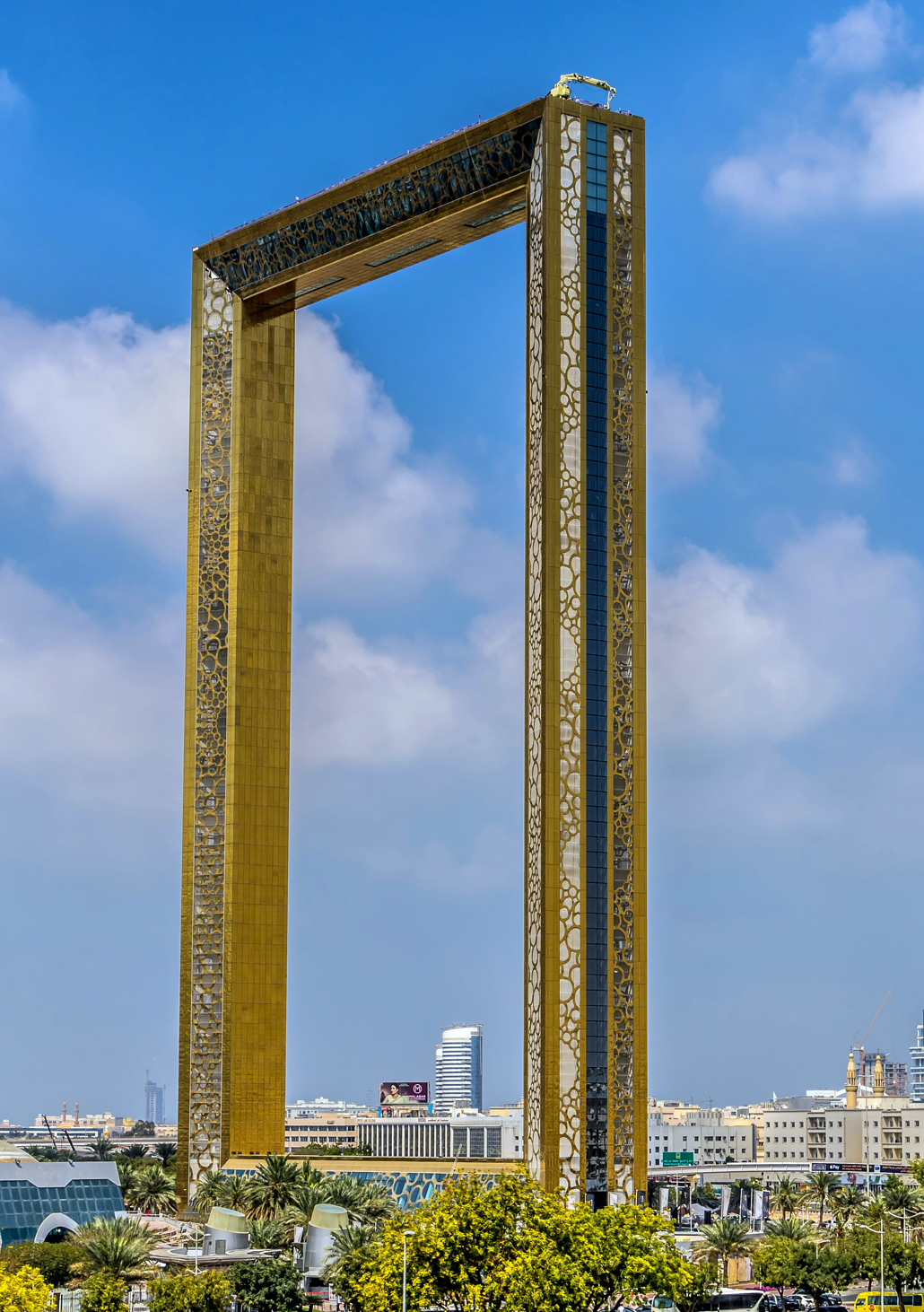 Dubai ist aber auch eine Stadt, die ihre Geschichte nicht versteckt, sondern inszeniert. Das Museum of the Future wirkt wie ein schwebender Ring aus Edelstahl, durchzogen von kalligrafischen Ausschnitten, die im Sonnenlicht glitzern. Der Dubai Frame hingegen verbindet Vergangenheit und Gegenwart auf eine Weise, die fast poetisch wirkt. Der goldene Rahmen bietet auf der einen Seite den Blick auf das alte Dubai mit seinen niedrigen Häusern und Windtürmen, auf der anderen Seite auf die moderne Skyline – ein architektonischer Perspektivwechsel, der die Entwicklung der Stadt in einem einzigen Bild einfängt.
